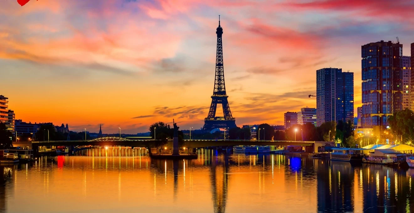 Depuis la place de la Concorde, où brille l’obélisque doré, on remonte les Champs-Élysées jusqu’à l’Arc de Triomphe imposant. Le chemin conduit ensuite à la tour Eiffel, dont l’éclat illumine le ciel parisien. En longeant la Seine, les ponts et les façades des monuments se dessinent dans un jeu de reflets et de lumière.